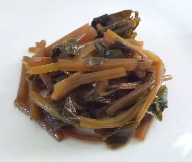山葵(わさび)の葉や茎、ガニ芽と呼ばれる新芽を醤油などで漬けこんだものです。